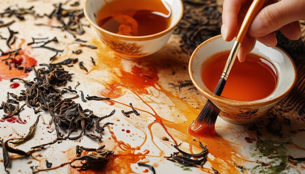 You've explored the rich history and creative techniques behind tea-based paintings and inks. By using natural materials like tea, water, and even coffee, you can create unique and eco-friendly artworks. This blend of tradition and modernity not only highlights the cultural importance of tea but also promotes sustainable art practices. So, why not grab some tea and let your creativity flow? Your next masterpiece might just be a brew away.