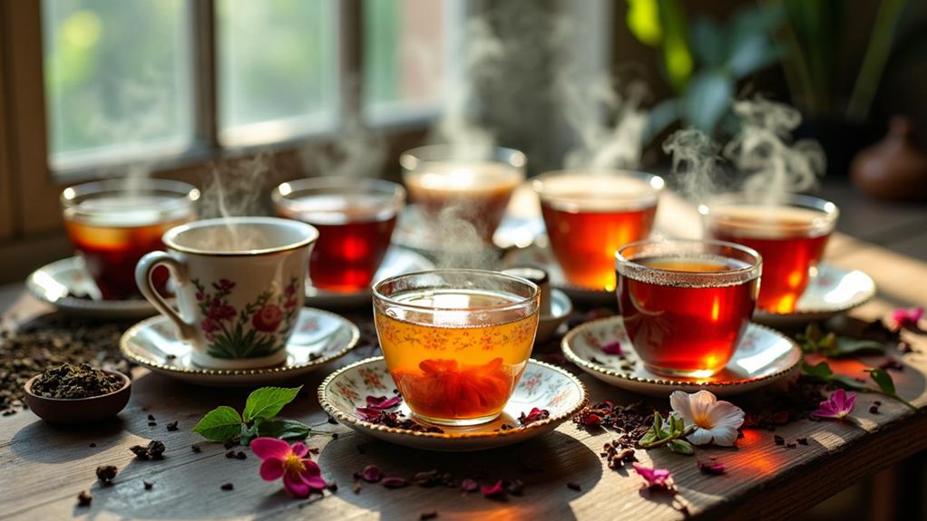 You'll uncover a range of flavor profiles, from the soothing chamomile to the invigorating peppermint. Each blend offers unique properties: some are immune enhancers, while others provide digestive support or act as relaxation aids. To optimize these benefits, you'll need to master different steeping techniques, as each herb releases its properties at different temperatures and times.
