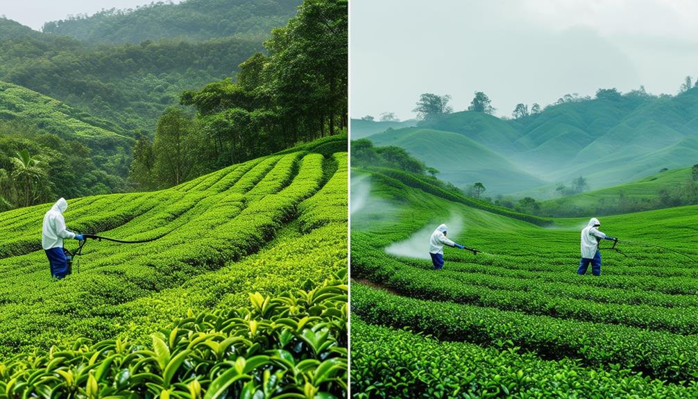 Conventional tea farming uses synthetic pesticides and herbicides to maintain crop health and boost productivity. This method relies on mechanization and standardized practices, allowing for efficient large-scale production. Farmers often prioritize high yields to meet market demands.