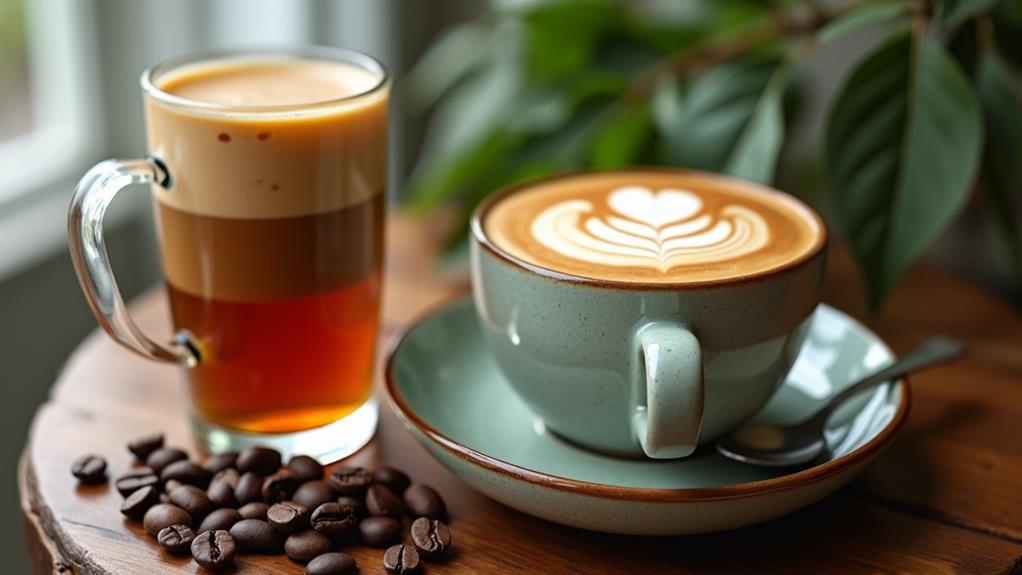 While caffeine content is a crucial factor in choosing between a tea latte and a latte, another aspect that can greatly influence your decision is the variety of popular add-ins. For tea lattes, you might find popular flavors like vanilla, lavender, and honey, which blend seamlessly with the delicate notes of tea. These flavors can enhance your tea latte experience, making it a comforting and aromatic choice.